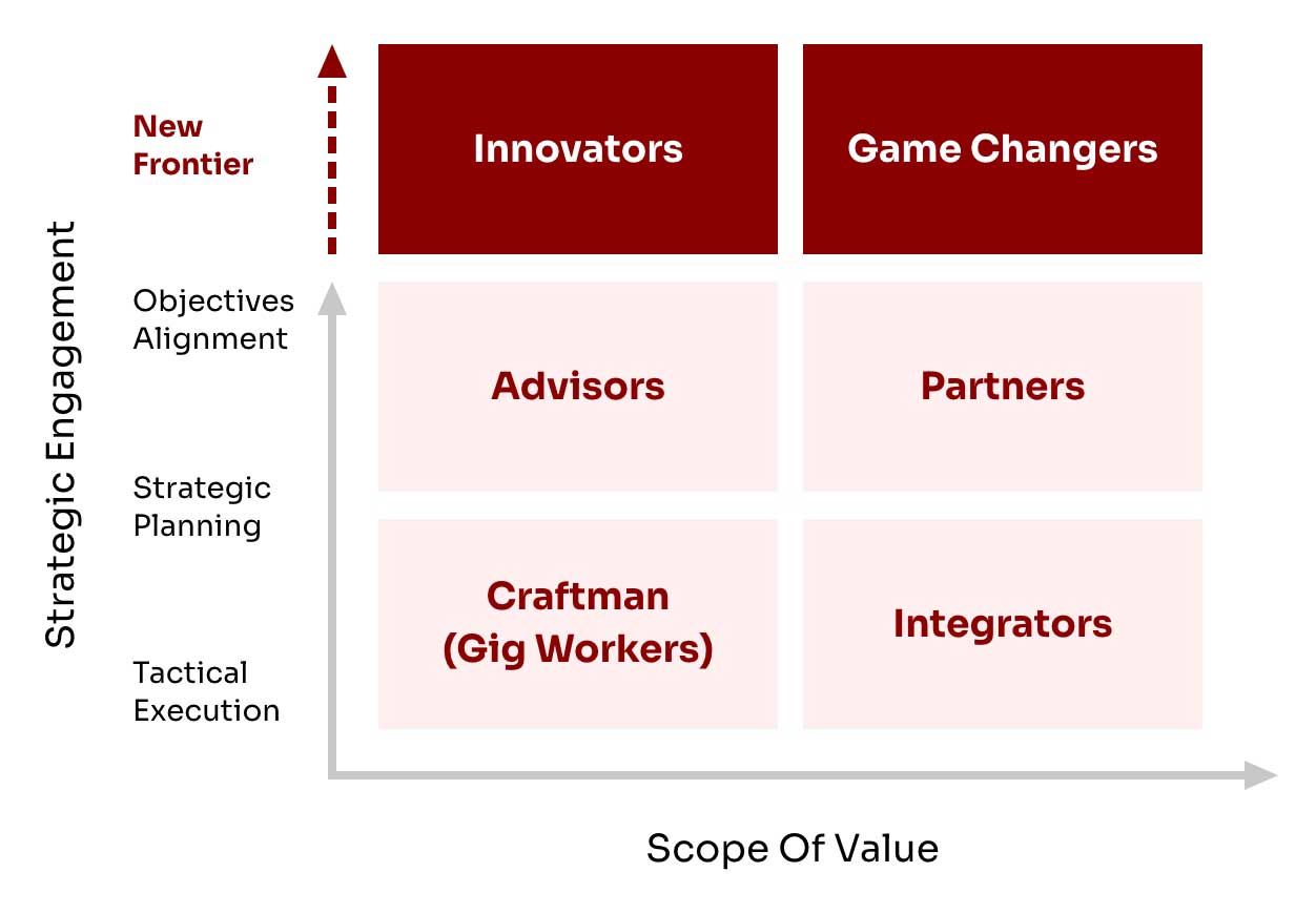 戦略から成果へ: 評論家や思想家であってはならない。不確実性の闇の中、わずかな可能性が突破口へとつながる道筋を照らし、正解のない既知と未知の狭間で大胆な別解を紡ぐ。なにより自らが不屈の胆力が試される泥臭い変革への推進力となり、後に手にする確かな果実の共有こそがコンサルタントの存在意義だと思う。
